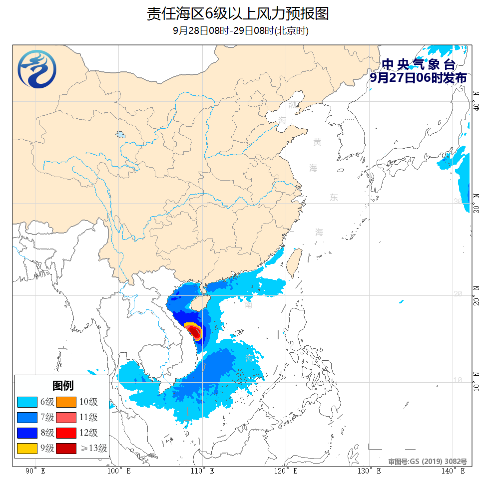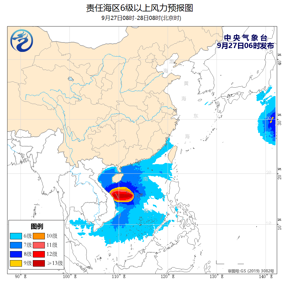 中央气象台9月27日继续发布台风黄色预警: