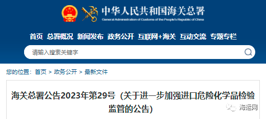 为深入贯彻落实习近平总书记关于安全生产的重要指示批示精神,进一步加强进口危险化学品检验监管,现将有关事项公告如下: