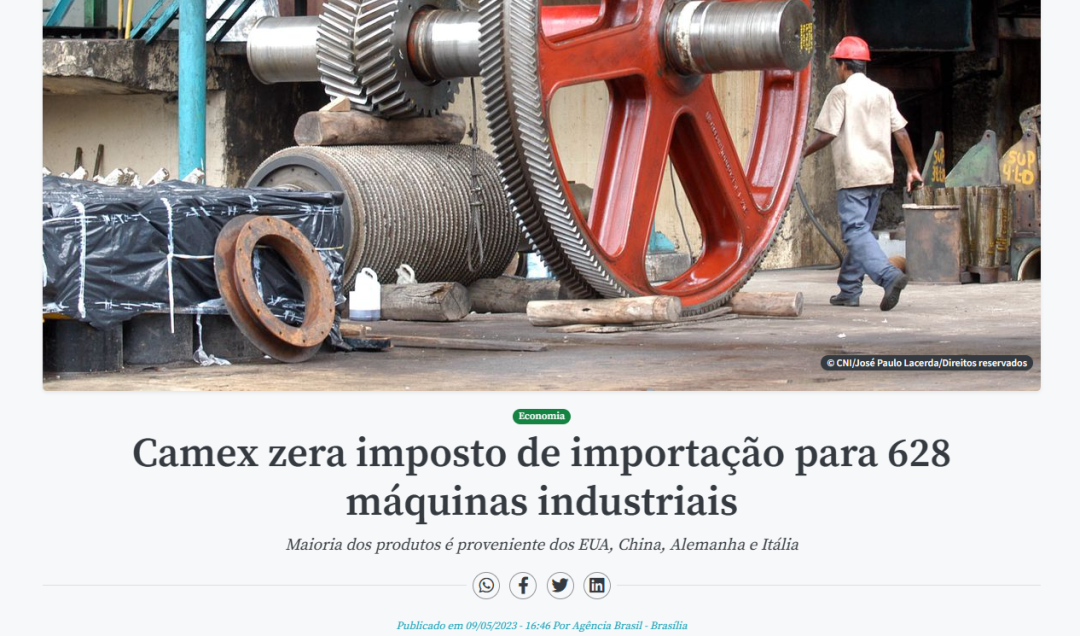 当地时间5月9日,巴西外贸委员会执行管理委员会作出决定,对628种机械和装备产品免除进口关税,免税措施一直持续到2025年12月31日为止。