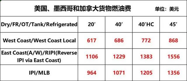 同日,HMM通知称,自2023年6月1日至月底,所有发往美国、墨西哥和加拿大的货物燃油附加费(BUC)将调整如下: