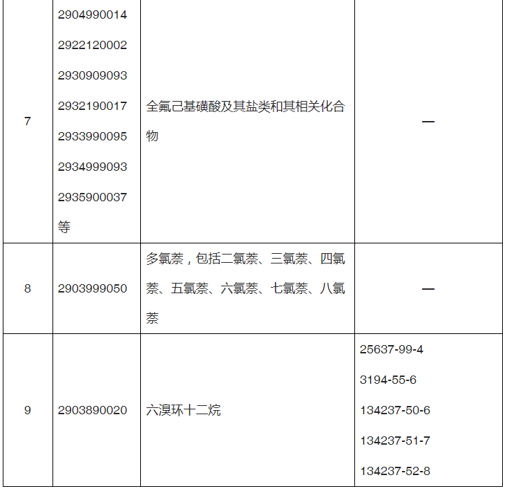3.全氟己基磺酸及其盐类和其相关化合物是指:(1)全氟己基磺酸(355-46-4),包括支链异构体;(2)全氟己基磺酸盐类;(3)全氟己基磺酸相关化合物,是结构成分中含有C6F13SO2-且可能降解为全氟己基磺酸的任何物质。